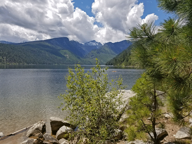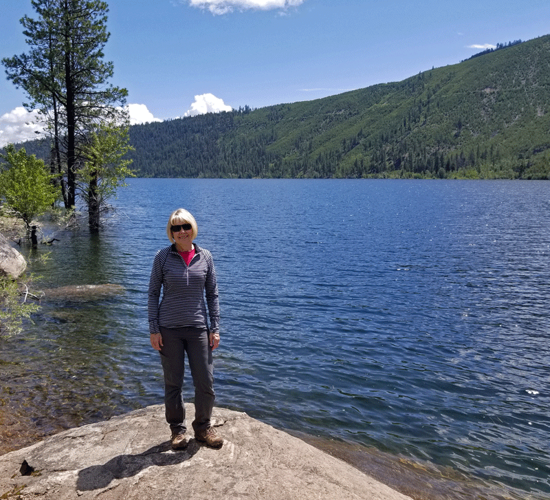 And finally, one more stop on the way to Missoula at Lake Como for a hike and picnic lunch. (I bet you didn’t know there was a Lake Como in Montana – we didn’t!) On the approach to Lost Trail Pass on the Idaho-Montana border, however, the temperature drops to 46 degrees, and we wonder about the wisdom of our stopover plan.