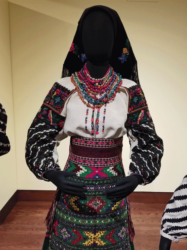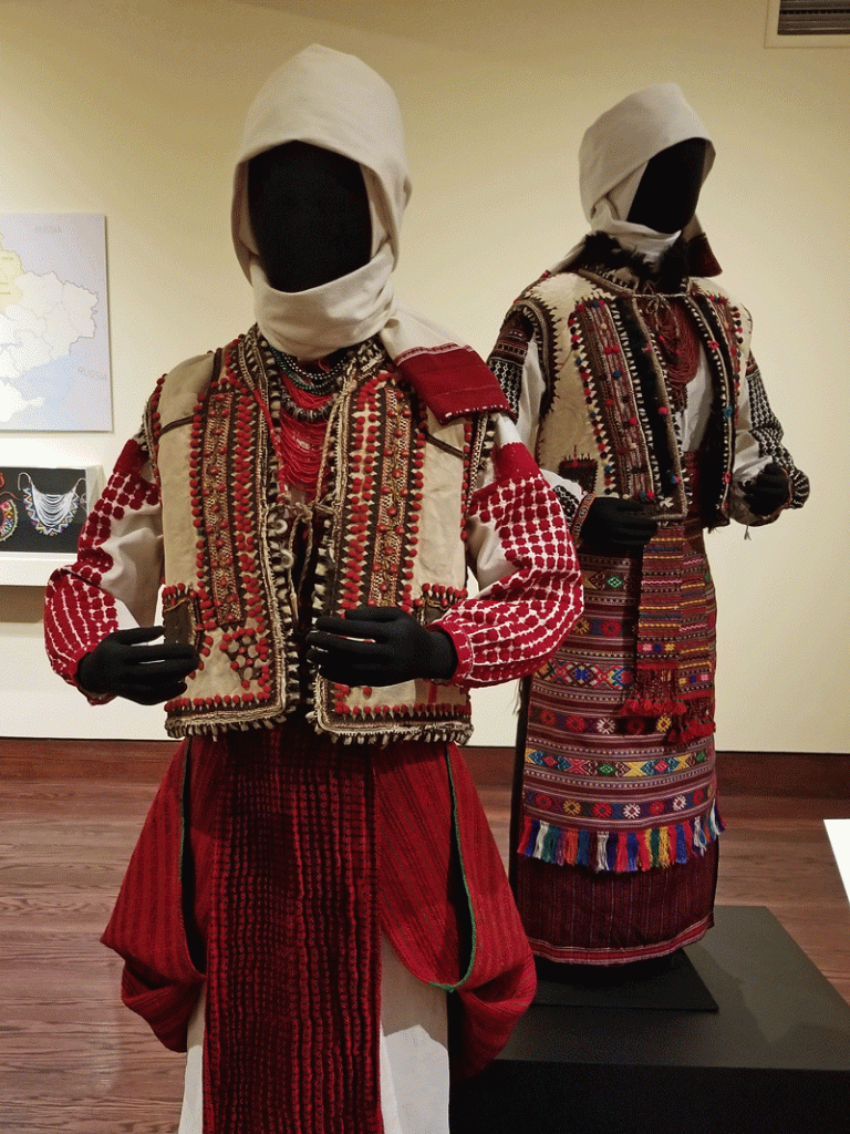 The first featured traditional clothing from ten different ethnographic regions in Ukraine, including period jewelry, shoes, and other accessories. It was a large exhibit that spanned the entire lower level of the museum. The colorful displays provided numerous photo ops, and here are a couple of examples: