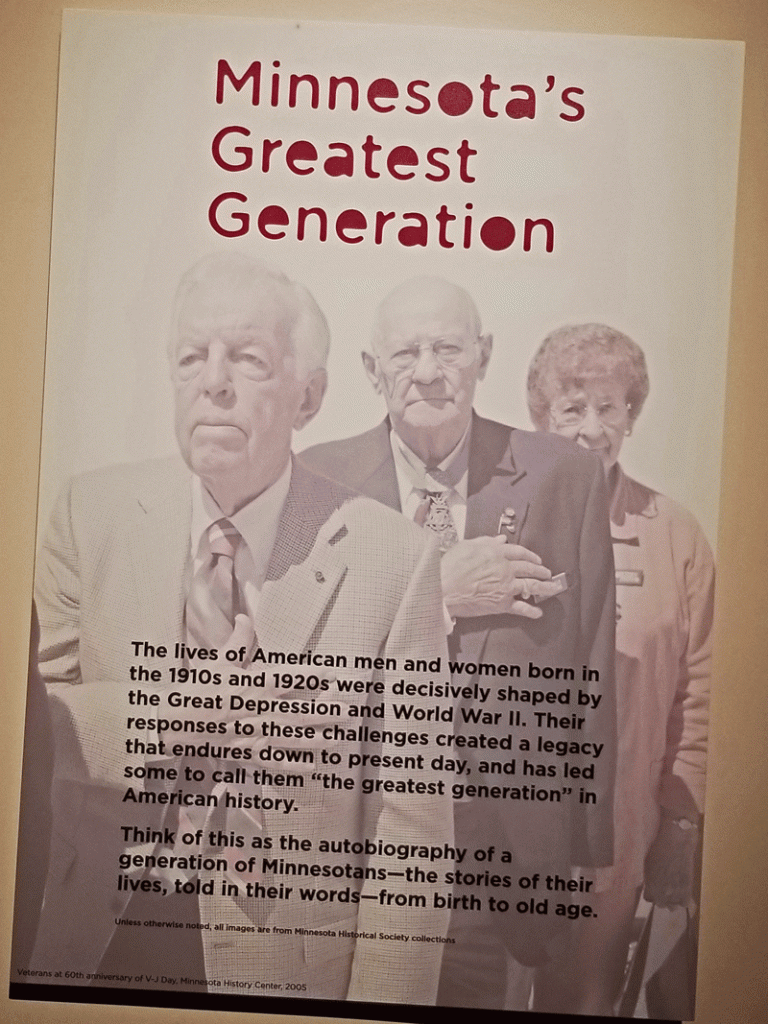 A short ride on the light rail took us to St. Paul, home of the Minnesota History Center and our destination for the day. The museum’s most compelling exhibit (in my opinion) was Minnesota’s Greatest Generation.