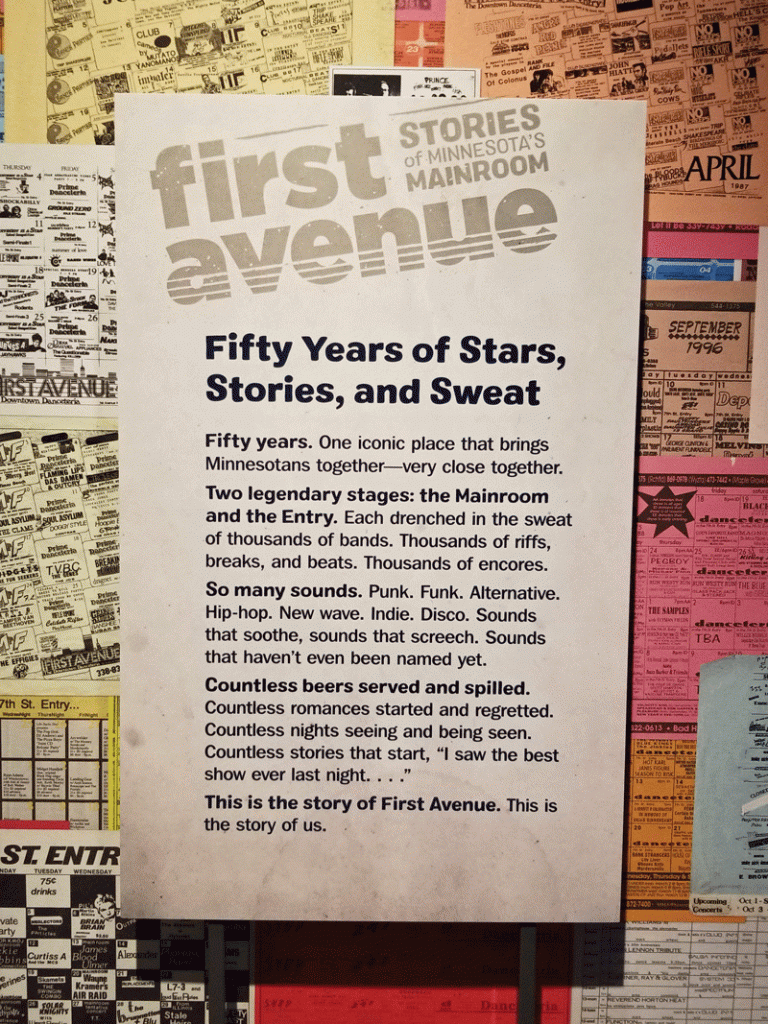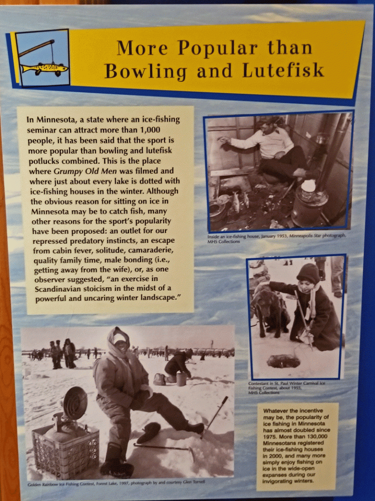 We visited four additional exhibits, all of which were interesting. Weather Permitting explored how Minnesotans have adapted to, and even thrive, in extreme weather conditions. First Avenue: Stories of Minnesota’s Mainroom examined the history and impact of the venue that is at the heart of the state’s music scene, including information about Prince’s multiple performances there. Open House was a well-researched and innovative exhibit about the various individuals and families that have lived at a single address in St. Paul over the years. And finally, Then Now Wow was a kid-friendly interactive exhibit about all things Minnesota.