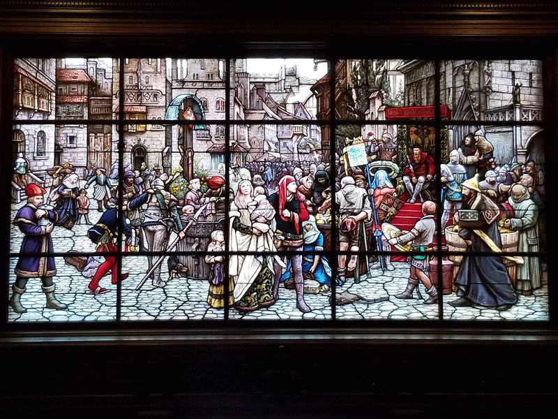 Stained glass replica of The Battle of Visby, an 1882 painting by Swedish artist Carl Gustaf Hellqvist