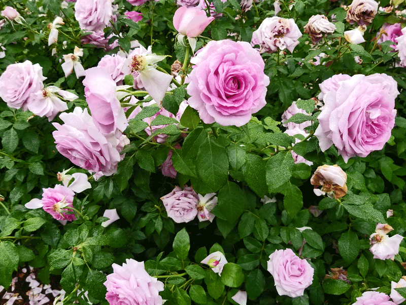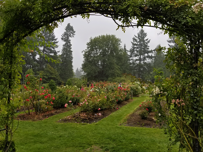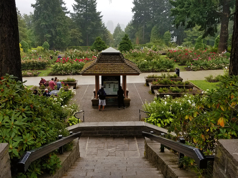 The rose garden is a short walk from the Japanese Garden, so we decided to look around. Although pretty, we just don’t know enough about roses to appreciate the subtle differences among the different varieties, so we lost interest in about 20 minutes. Plus it was raining by then. Glad we stopped by, however.