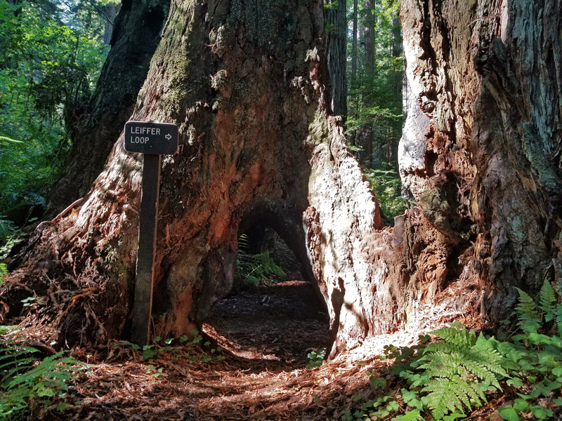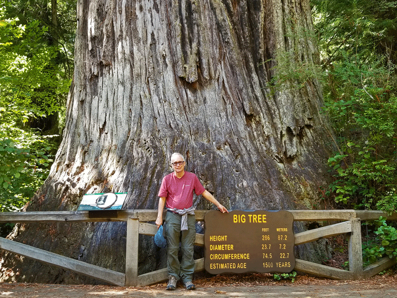 We veered off the highway onto the Newton B. Drury Scenic Parkway for a drive through Prairie Creek, including a stop at the Big Tree Wayside, where there’s a short loop trail for viewing . . . big trees.