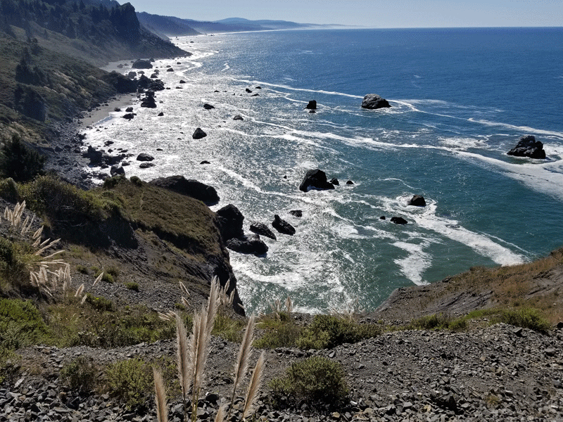 After spending the night in Crescent City, we continued our journey the next morning through Del Norte Redwoods State Park, then to the coastal section of Redwood National Park. Our first stop at the Klamath River overlook offered a fantastic view of the coast, so we lingered for an hour or so, hiking down a short, but steep, trail to get a closer look.