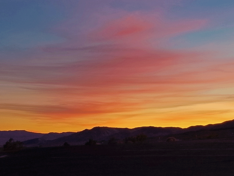 We soaked it in over the next few minutes until the colors faded away. No photos of the magical experience, as I was driving with no place to pull over. However, we stopped at Father Crowley Vista Point several miles up the road and turned our attention westward to experience the last gasp of the beautiful sunset. Not too shabby!