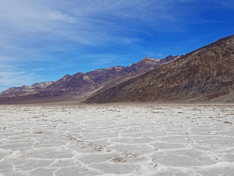 At 283 feet below sea level, Badwater Basin is the lowest point in North America and features around 200 square miles of salt flats. Bill took a little taste and confirmed that the white substance was . . . salt.