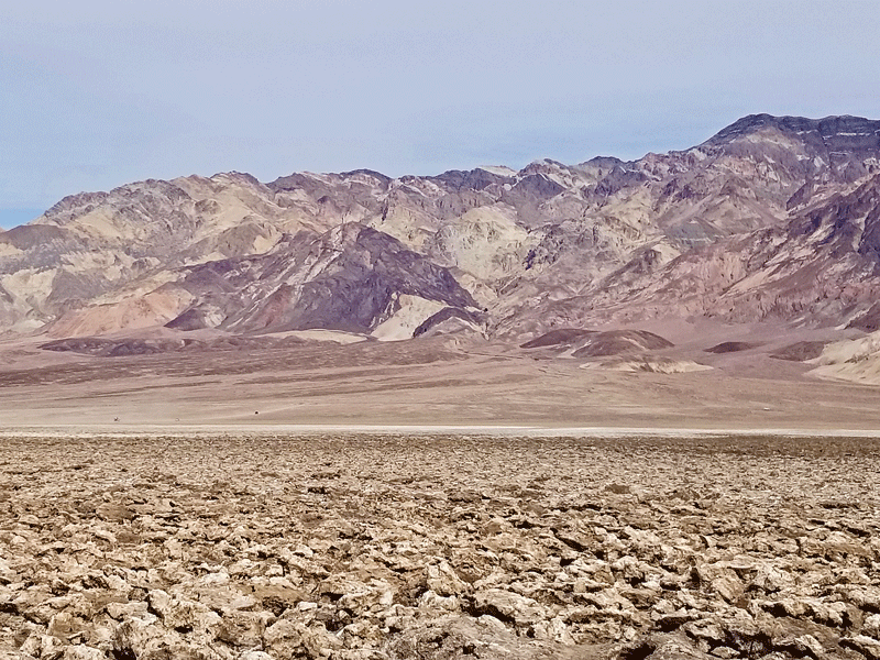 The rest of our experience at Death Valley was equally surprising and rewarding. We knew it was a bone dry and unbelievably hot desert but didn’t realize how massive the national park is. At 3+ million acres, it’s the largest in the lower 48 and half again the size of Yellowstone – bigger than the combined area of Delaware and Rhode Island.