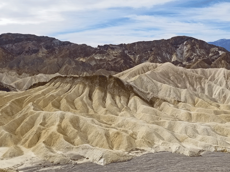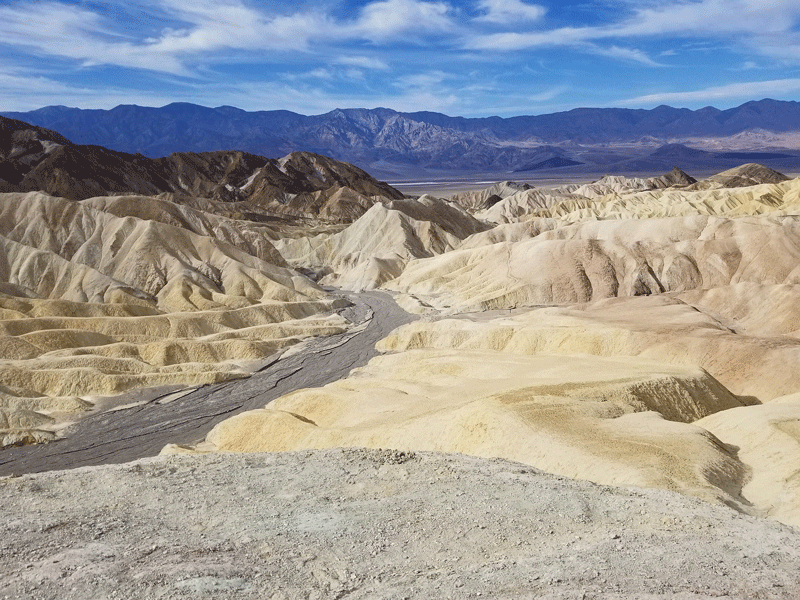 Fun fact – the photo on the cover of U2’s Joshua Tree album was shot at Zabriskie Point, which does not contain a single Joshua tree but offers sweeping views of the clay and mudstone badlands of Death Valley.