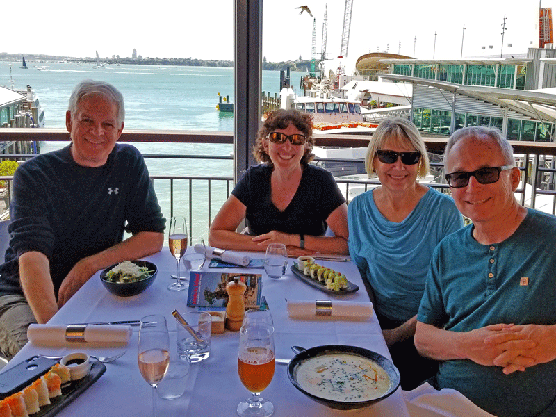 It was 25 degrees and snowing heavily when we left Denver.  Upon our arrival in Auckland, it was sunny and headed toward a high of 70+ degrees.  Off to a good start!