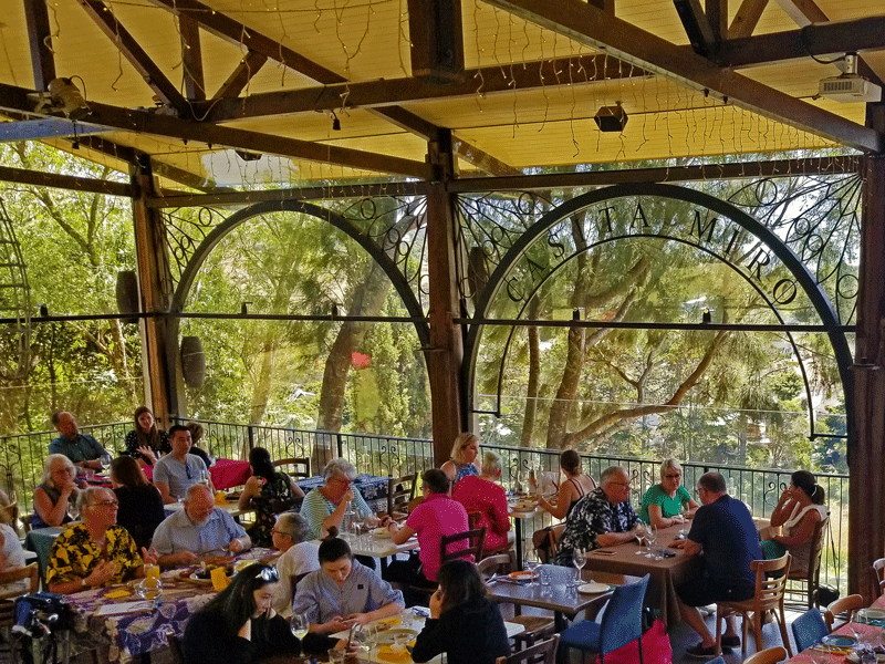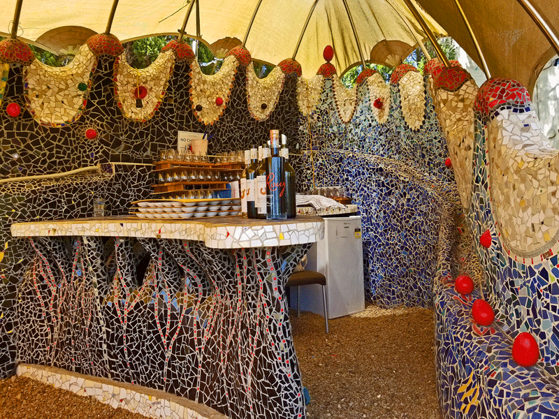 We walked up a short path from Obsidian to Casita Miro, our second winery of the day, which specializes in Spanish-style wines and award-winning cuisine. The setting was pleasant, the wines were fine, and the colorful mosaics all around the property were outstanding.
