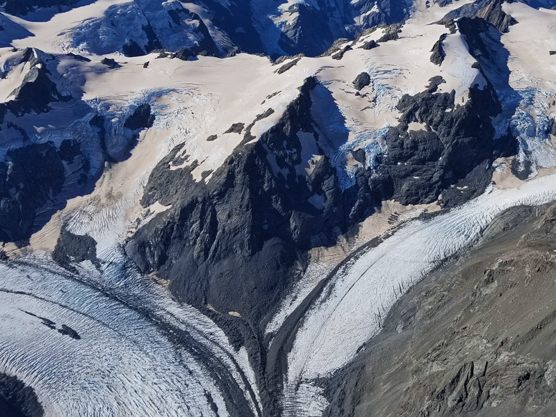 Then we got up close and personal with the snow, ice, and glaciers. The brownish tint on the glaciers is from smoke, ash, and dust that blew in from Australia’s huge bushfires last summer.