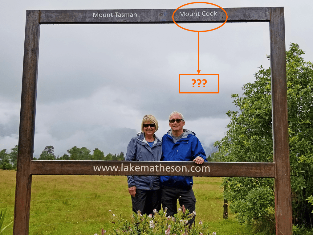 Our first attempt at catching a glimpse of Aoraki/Mount Cook, New Zealand’s highest peak at 3,724 meters (12,218 feet), had been a few weeks earlier from Lake Matheson on the West Coast. It was a bust.