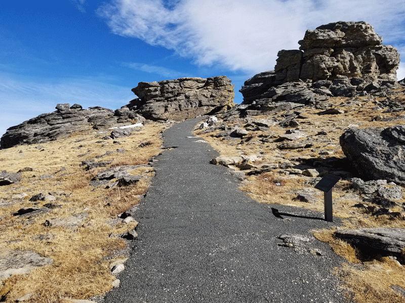 The route through Rocky Mountain National Park includes 48 miles of driving on Trail Ridge Road, a spectacular highway that is arguably one of the most scenic drives in the U.S. For 11 miles, the highway takes you above treeline, which occurs around 11,500 feet elevation. The highest point on the drive is 12,183 feet elevation.