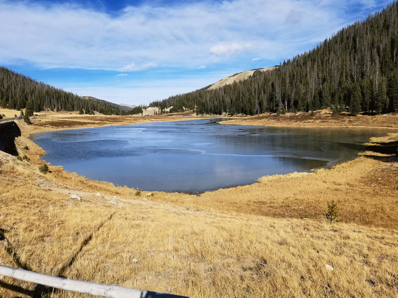 We also stopped at Milner Pass to take a photo of Poudre Lake, the headwaters of the Cache la Poudre River that eventually runs through Fort Collins. Note the thin layer of ice already forming on the lake.