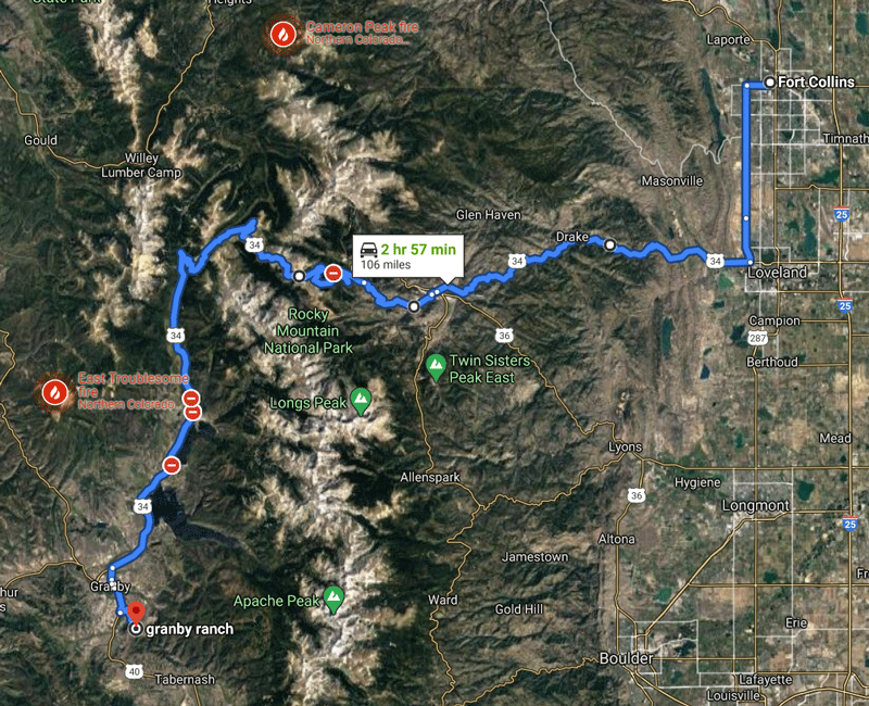 We encountered heavy smoke in the Big Thompson Canyon on the way to Estes Park, so we knew the Cameron Peak Fire, Colorado’s largest wildfire ever, was on the move yet again.