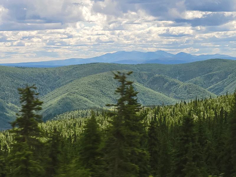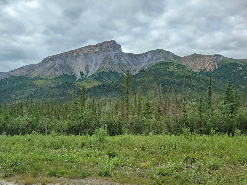 Our third stop was at the Yukon River Camp. Normally, we would have eaten a late lunch there, but due to staff shortages this summer, the kitchen was closed. So it turned out to be just another bathroom break, although there were some cool shirts available for sale in the gift shop. (Thankfully, we had gotten a heads up that there was no food service along the way, so we brought our own provisions.)
