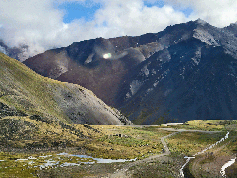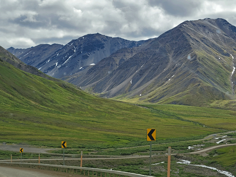 Water on the south side of the Continental Divide at Atigun Pass flows to the Bering Sea and Pacific Ocean. On the north side, water ends up in the Arctic Ocean.