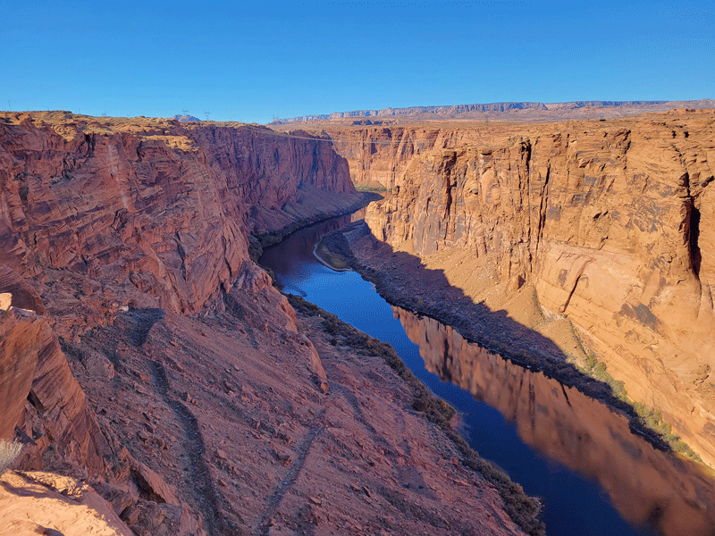 Horseshoe Bend features a picturesque meander of the Colorado River, and it’s hugely popular with tourists. So popular, in fact, that finding an open slot in the parking lot can be a challenge, but we didn’t have a problem.