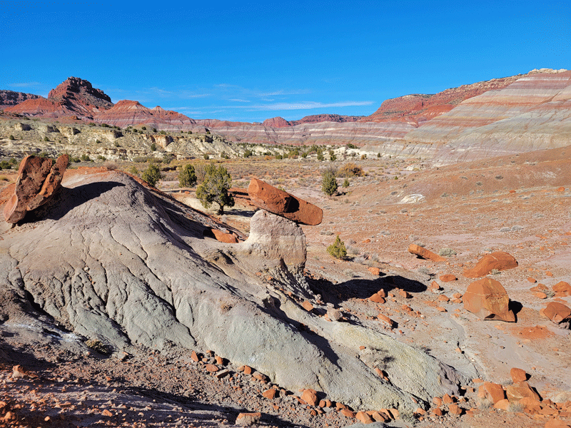 Driving north from Page on highway 89, you pass through the southern boundary of the Grand Staircase-Escalante National Monument. Including the Toadstools hike mentioned earlier, we spent the better part of three days exploring this area.