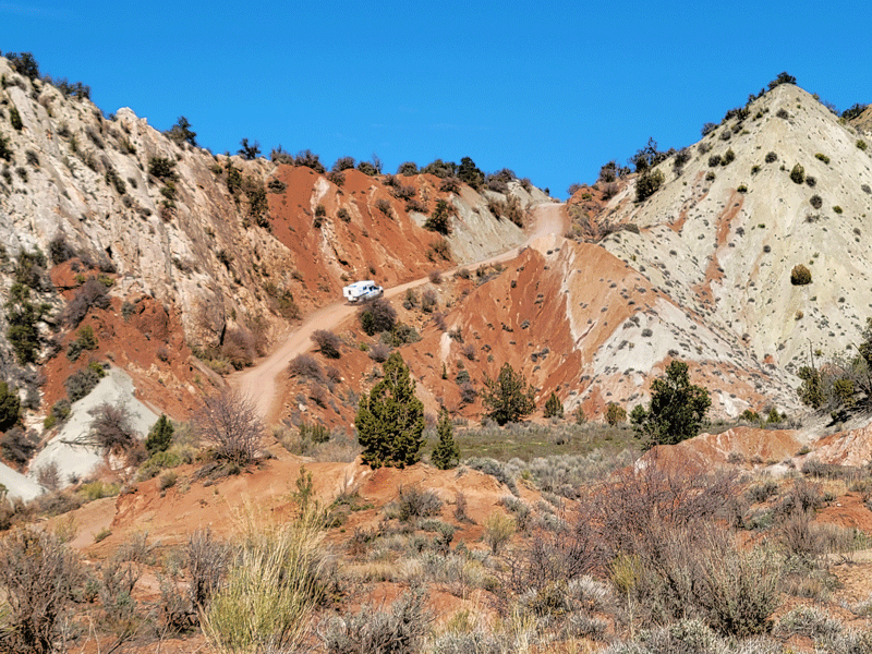 Today, you must look hard to find any physical evidence of Paria’s past, but the jaw-dropping natural beauty of the backdrop remains. Visitors can access the site from highway 89 via a five-mile dirt road that’s rocky, steep and narrow. It’s generally OK for 2WD vehicles as long as it’s dry. Our Subaru did great.