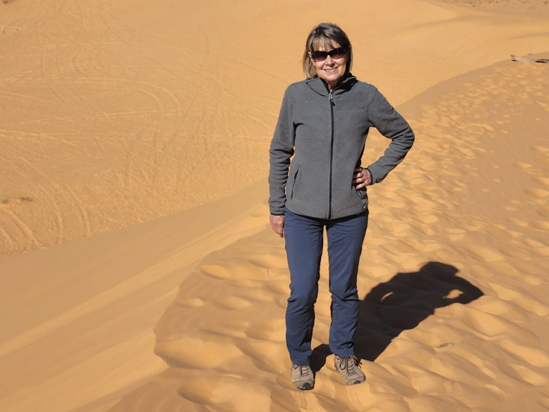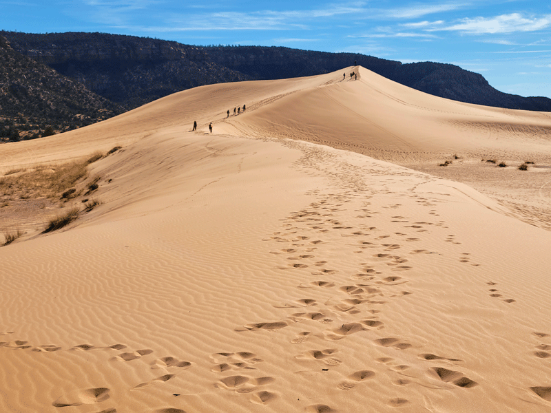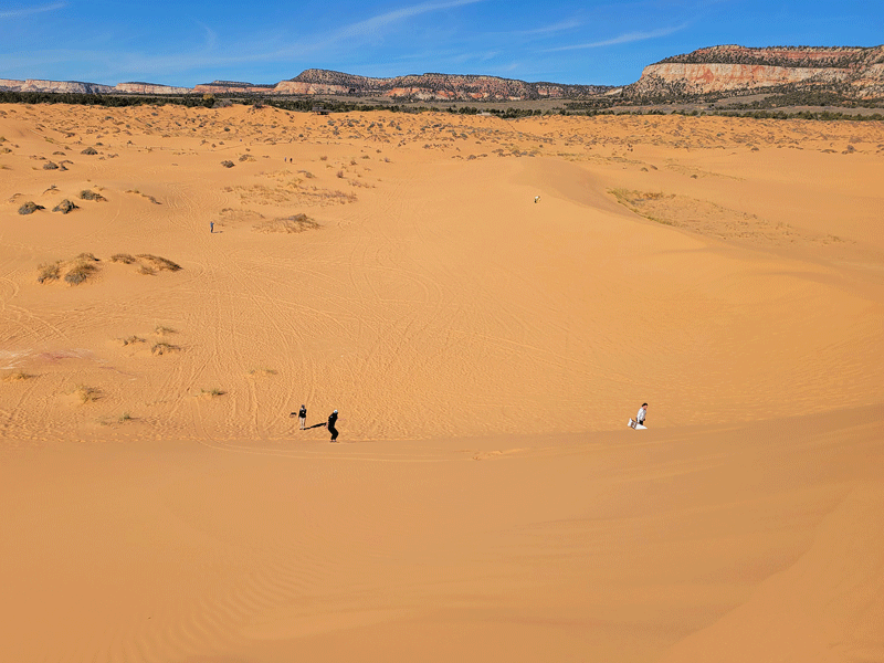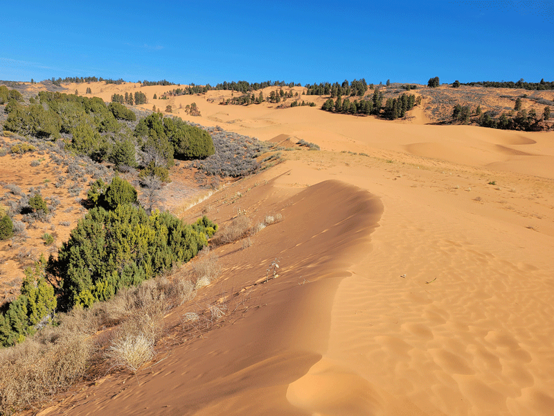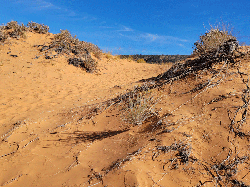 Hmmm – maybe if the light is just right, but to our eyes, the sand was more of a goldish-orange color. Either way, a pleasant day trip from Kanab.