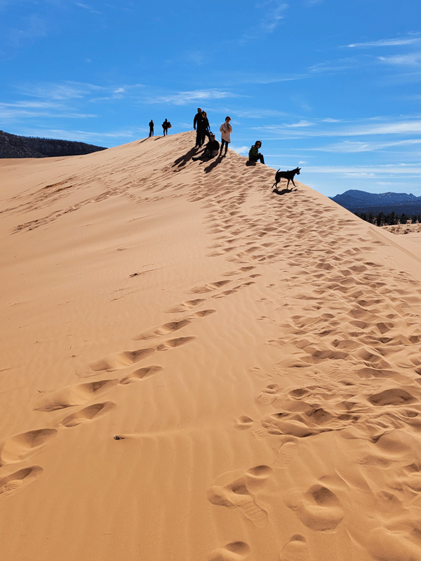 The most popular way to navigate this small park is with an off highway vehicle (OHV), but there is also a day use area for exploring on foot. As with other sand dunes, it’s slow going and requires patience. Our calves, quads and glutes were not happy by the end of our trek.