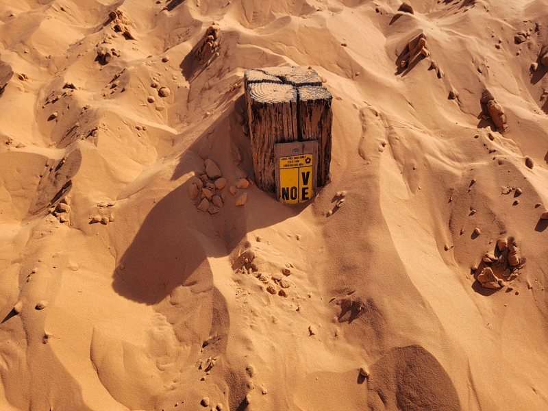 Formed by the erosion of pink Navajo sandstone, the dunes are estimated to be 10,000-15,000 years old and can shift up to 50 feet per year, as evidenced by this “No Parking” sign peeking out from a big sand pile in the parking lot.