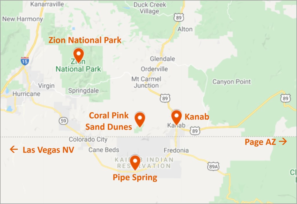 So says the catchy advertising slogan on the welcome sign as you drive into this small town of ~4,700 residents in extreme southern Utah. Why were we there? Proximity to Zion National Park and Pink Coral Sand Dunes State Park, and both were as good as we had hoped. With a national monument and a few local attractions added to the itinerary, we were sufficiently entertained for a week.