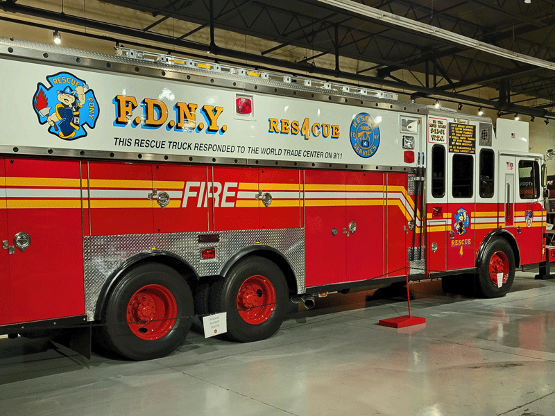 There’s an extensive display of memorabilia from the Sep 11, 2001 tragedy in New York, including one of the many units whose crew participated in rescue operations.