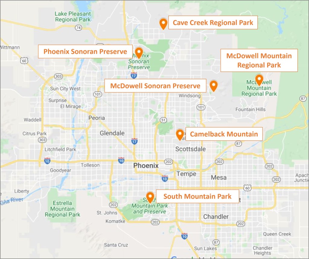 The best thing about hiking in the Phoenix area is that you can. Despite being the 11th largest and 9th fastest growing metro area in the U.S. (according to the 2020 U.S. Census), there are a surprising number of open space options for hiking, horseback riding, or mountain biking just a short drive away from anywhere in the Phoenix area. Not exactly getting away from it all, but a giant step removed from the sights and sounds of urban life.