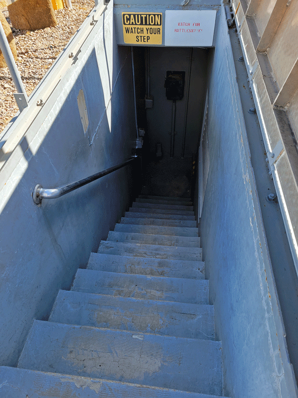 With no rattlesnakes in view, we descended through the access portal into the underground complex as our guide explained the complicated process for changing out the four-person crew at the end of their 24-hour shift, including a series of strict security measures to ensure an uneventful handoff to the incoming team.