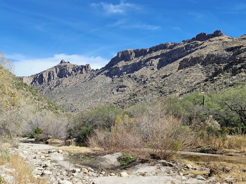 Closer to Tucson, we decided to check out Sabino Canyon – only 45 miles from Madera Canyon, but an entirely different experience!