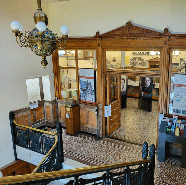 Housed in a former bank, the Watkins Museum (free admission, donations appreciated) is worth a visit on two levels – the historical exhibits, of course, plus the architectural details of the gorgeous building where they are located.