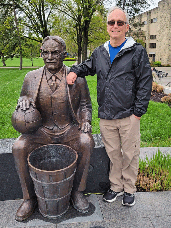 As it turned out, he wasn’t much of a coach (55 wins and 60 losses), but during his tenure at KU, the nascent sport of basketball took off both nationally and internationally. He presented the Olympic medals for basketball at the sport’s debut in Berlin in 1936. Mr. Naismith retired from KU in 1937 and remained in Lawrence, where he died just a couple of years later.