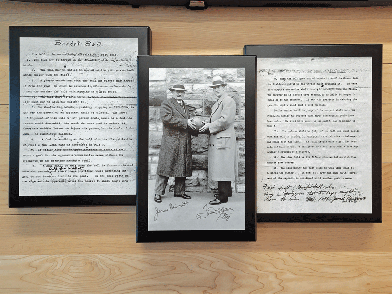 In 2010, Naismith’s grandson asked Sotheby’s to auction off the elder Naismith’s “Original Rules of Baseball” document, which consists of two typewritten pages along with some handwritten notes. KU alumnus David Booth and his wife, Suzanne, outbid competitors and paid $3.8 million (plus another $500K in fees) to secure the prize, and the rules are now displayed at the DeBruce Center.