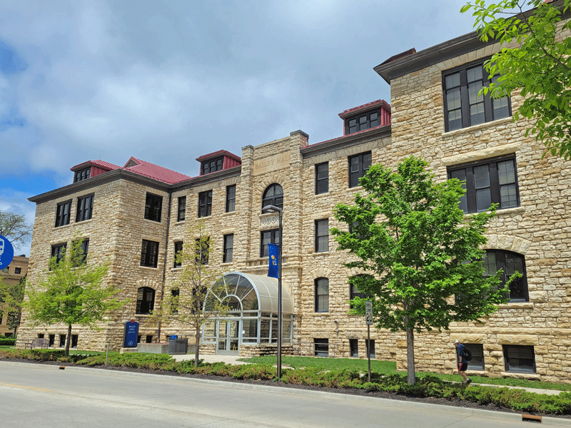 Outsiders under the impression that Kansas is simply 80,000 square miles of flatland full of wheat fields may be surprised to learn that KU’s main campus is quite hilly. OK, it’s a relatively small hill at 1,037 feet in elevation, but Mt. Oread (the official name) is steep enough to get your attention. And the campus has maintained its beauty over the years, even as the University has expanded.