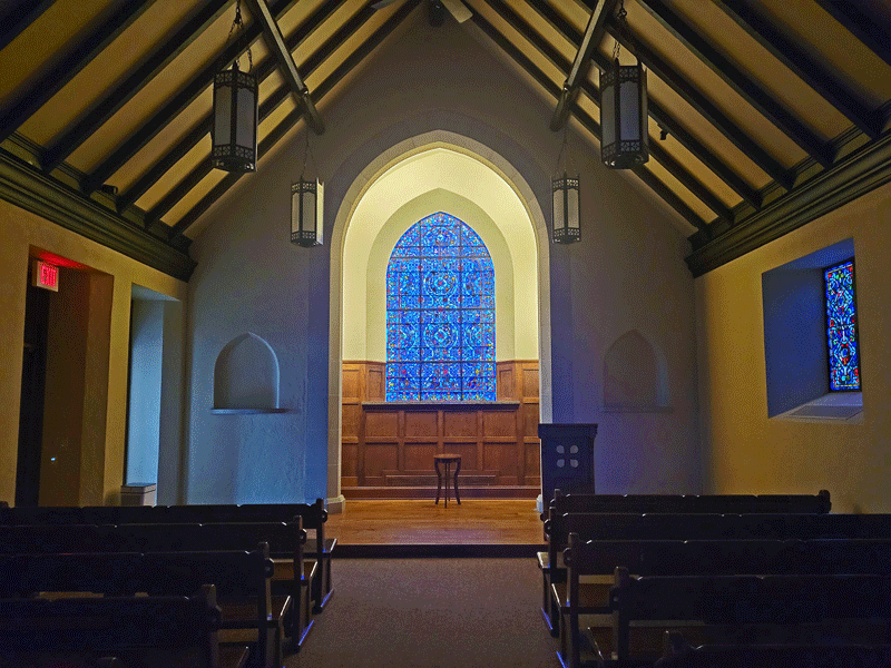 Finally, one location on campus is particularly special to us – Danforth Chapel, where we were married in 1975. It’s still beautiful, inside and out.