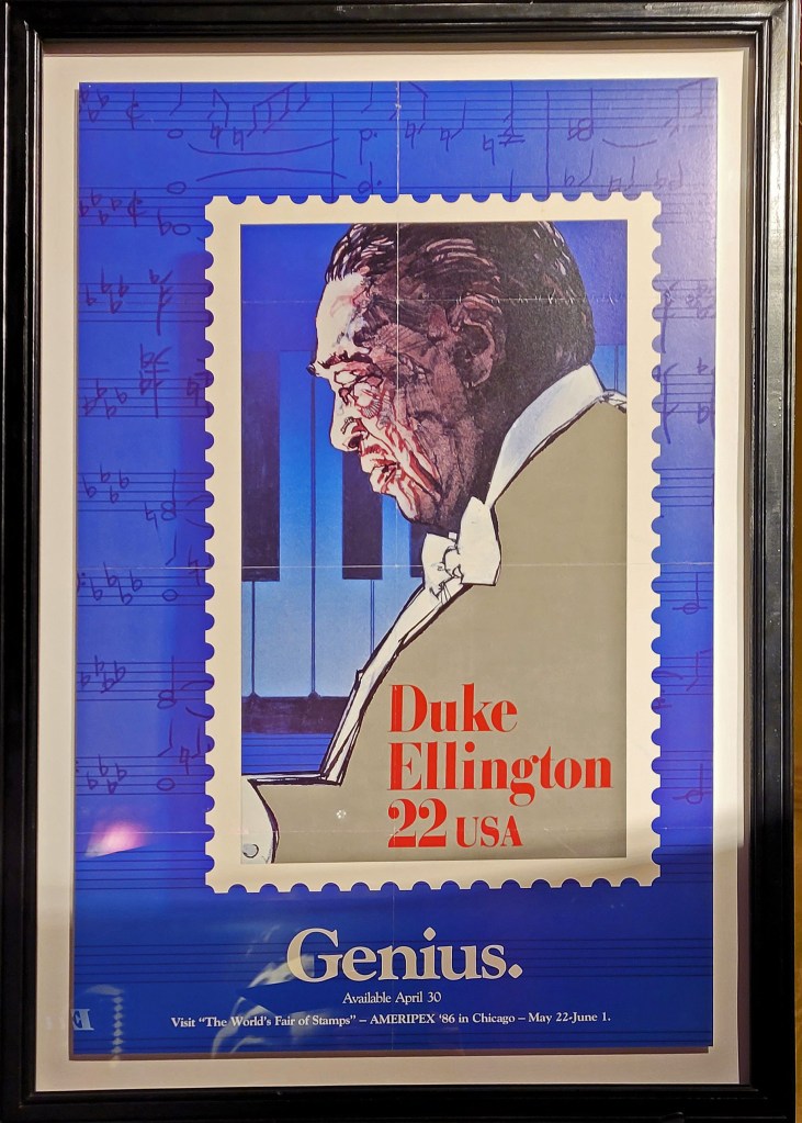 Also shown below is a large scale version of a U.S. postage stamp featuring Duke Ellington that was issued in 1986.