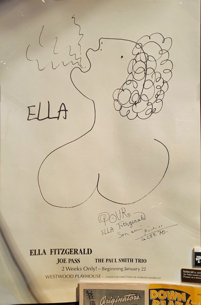The Pablo Picasso sketch of Ella Fitzgerald shown below was commissioned by her manager and used in many of her promotional materials.