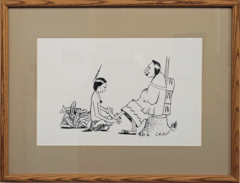 Over the years, Black Bear created a huge number of unpublished cartoons, mostly for his own amusement, which were contained in sketchbooks and loose drawings. These two made me smile.