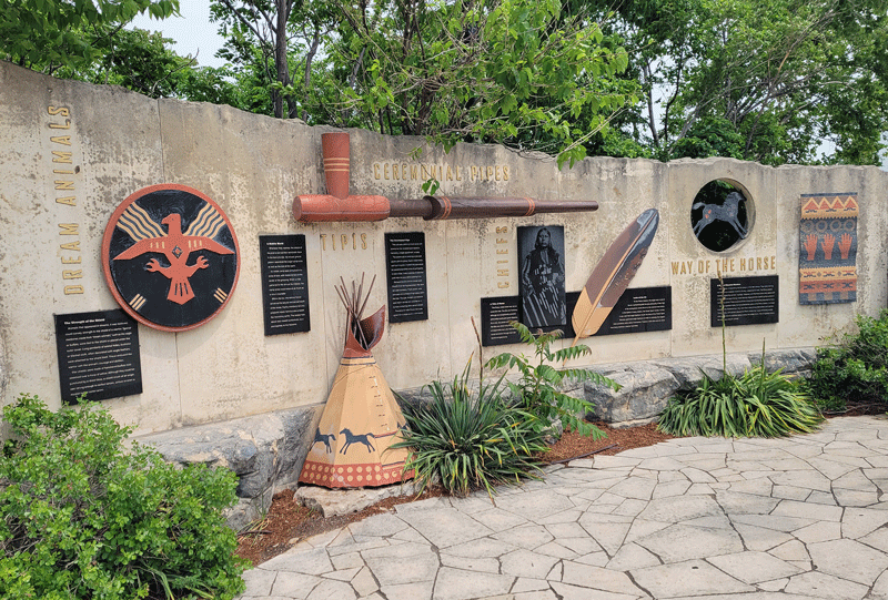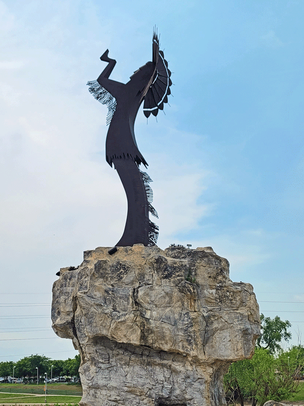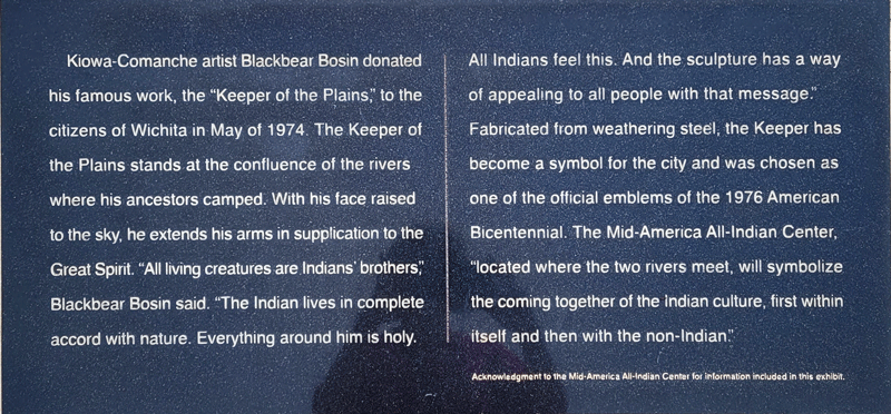 Hundreds of years ago, the Wichita Indians lived here, and the location of the Keeper is still considered sacred ground by descendants. Displays at the adjacent plaza explain some of the background and symbolism associated with Plains Indians.