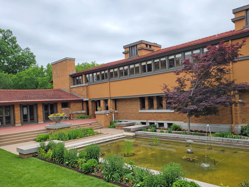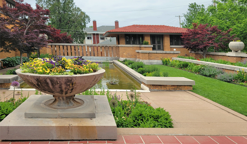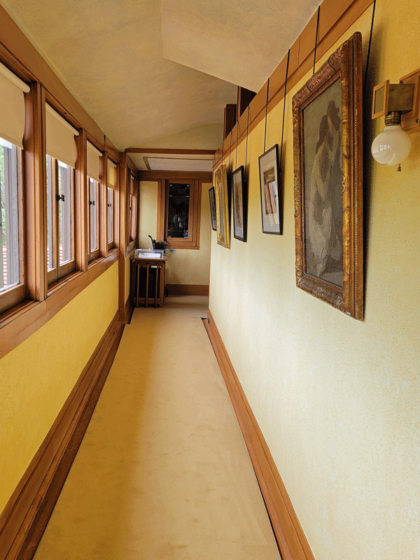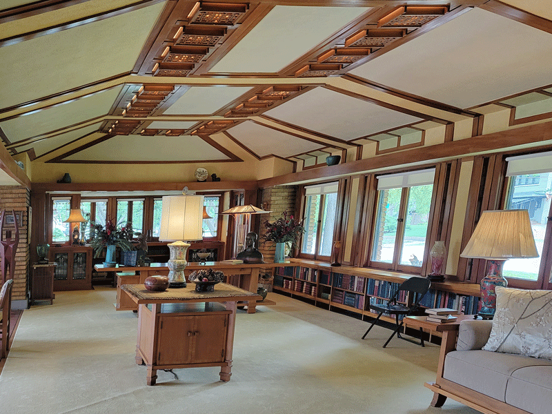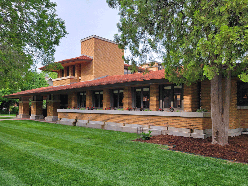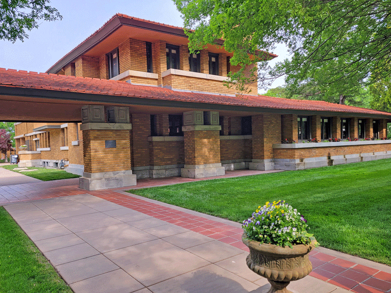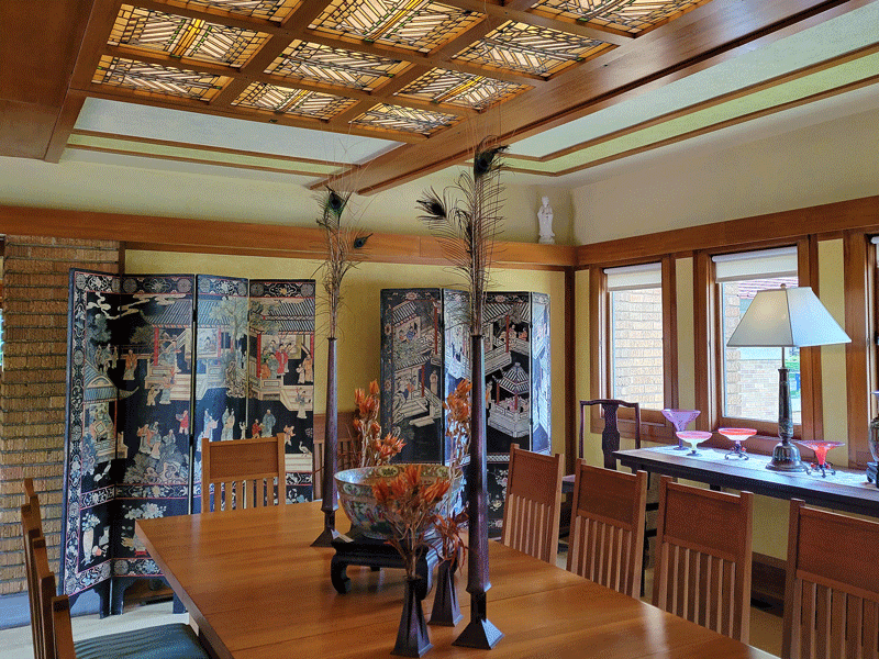 The family’s prairie-style home is noteworthy because it was designed by Frank Lloyd Wright. Completed in 1918, most of the original features have been preserved, including custom furniture – both built-in and moveable – and Elsie Allen’s expansive art collection.