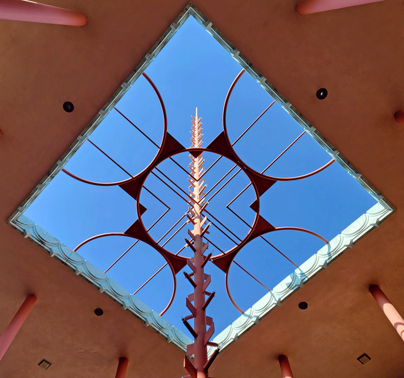 And finally, you couldn’t miss Black Bear’s large, beautiful mural entitled, From Whence All Life. Commissioned by Farm Credit Bank in 1972, every square inch is symbolic of the beliefs of Plains and Southwest Indians. A lengthy description written by Black Bear explained it all.