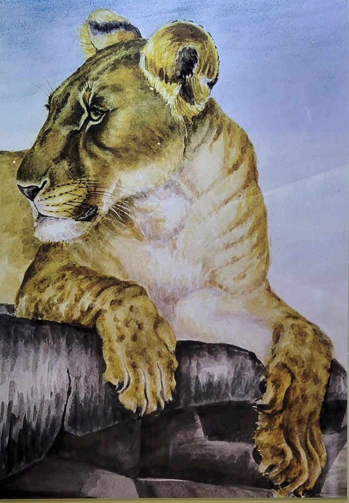 Her initial focus was botanical illustrations but expanded when she was commissioned by the Kenyan government to create portraits of indigenous people. She completed 132 paintings in a little more than a year. To a lesser extent, she did animal portraits, including her beloved Elsa (shown below). Her books are now on my reading list.