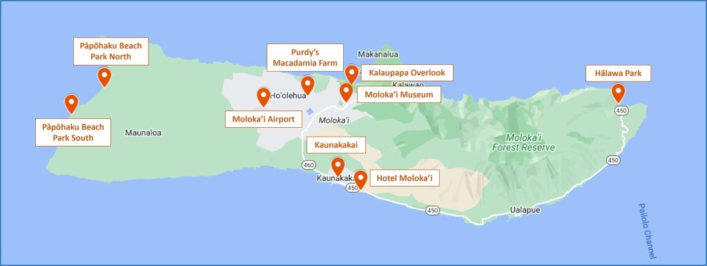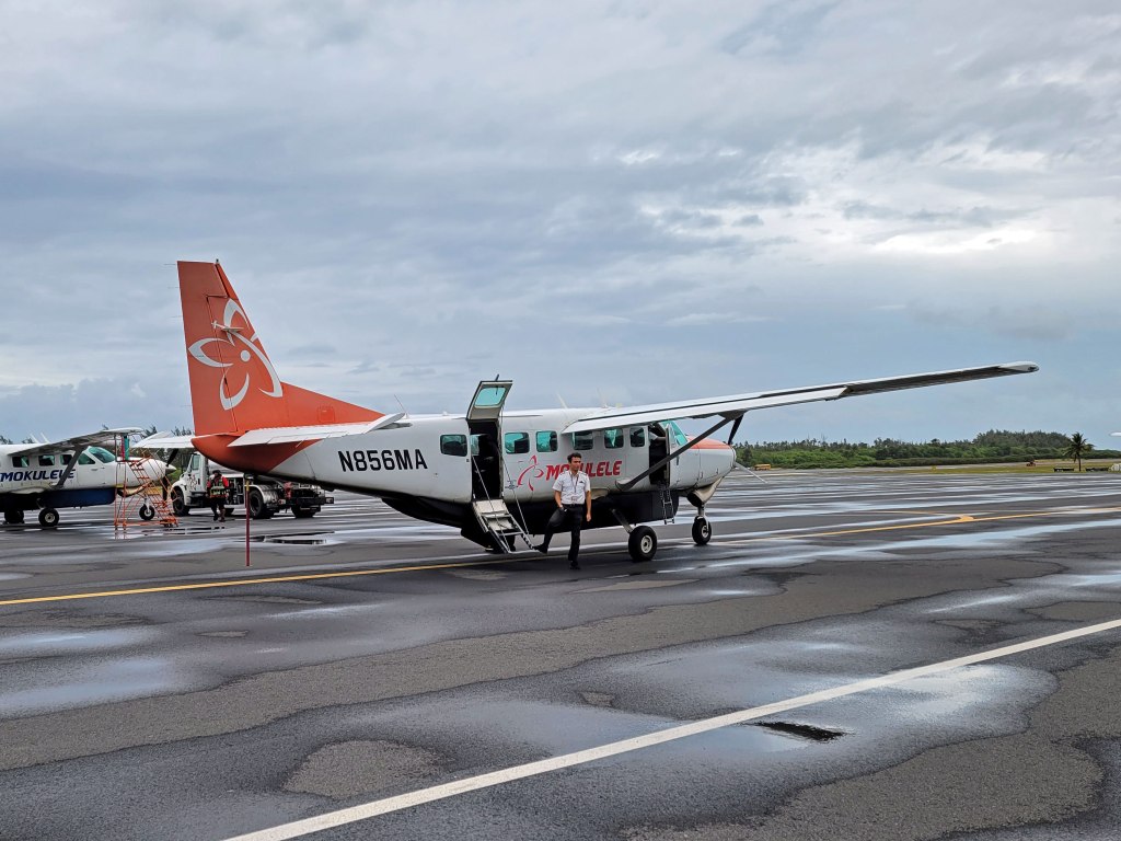 All of that sounded appealing to us, and Bill has long wanted to visit Moloka’i. So we booked a room for three nights at Hotel Molokai, the only full service lodging option on the island, and purchased round trip plane tickets from Kahului to Kaunakakai (the only way to access Moloka’i other than by private boat).