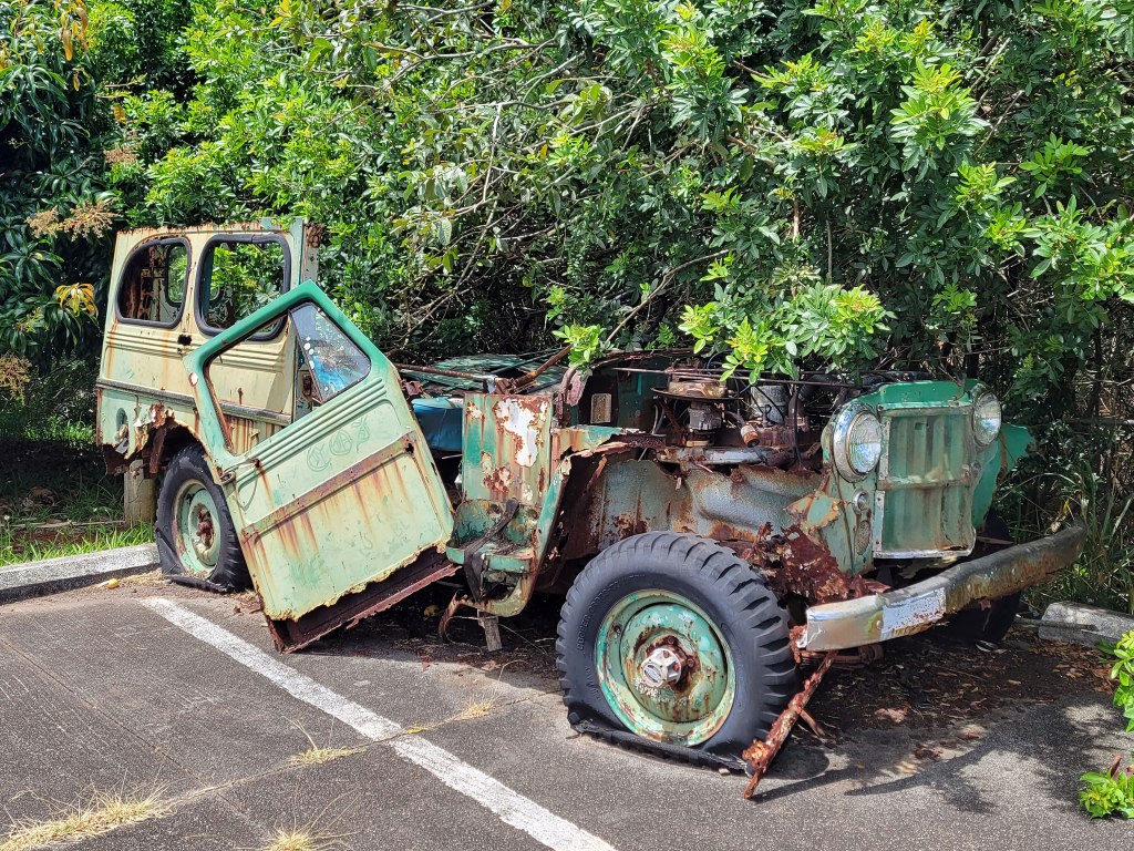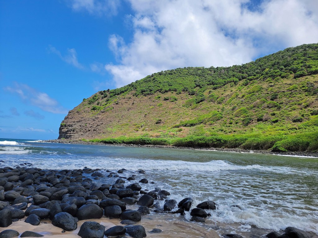 Once we saw the natural beauty of the area, we regretted not having booked a hike to Moa’ula Falls, located at the end of Hālawa Valley. Accessible only with a guide because the trail crosses private land, the 250-foot cascade is considered a sacred site by Native Hawaiians, and according to visitor reviews, the waterfall is a gem. So if you go to Moloka’i, you might want to look into it – three miles each way, with several water crossings, muddy terrain and large tree roots on the path.