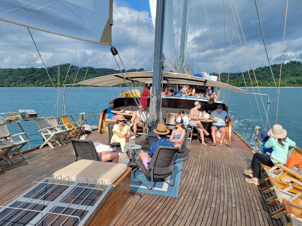 Only about 30 passengers on a beautiful vessel that has capacity for 100, so we had plenty of room to spread out. We had most everything you would expect during our four hour cruise – scenic views, a friendly and capable crew, social chats with fellow tourists, time in the water for swimming or snorkeling, plus tasty food and beverages.