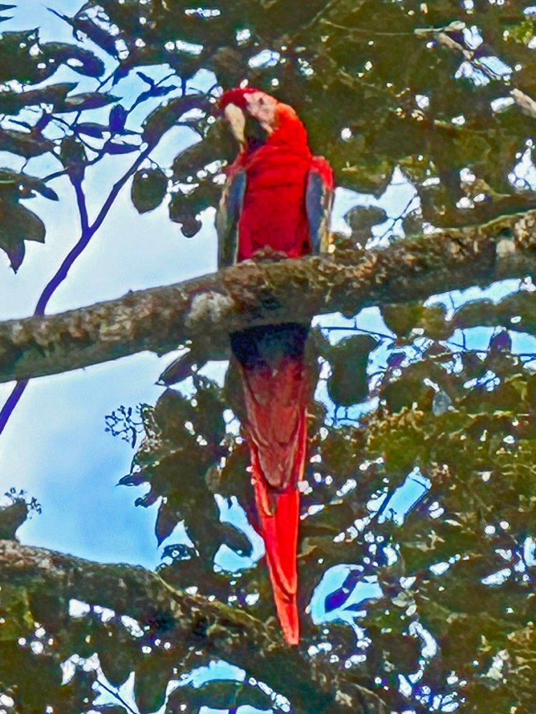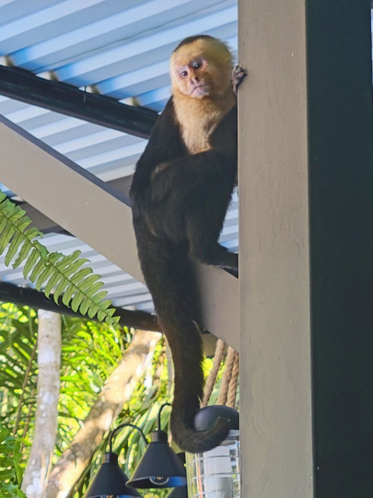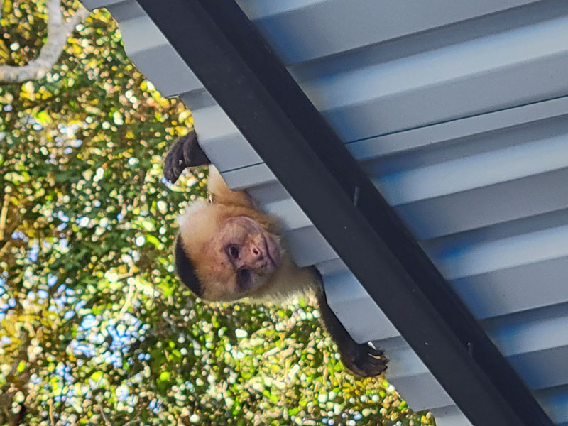 Plus the bungalows were brand new in 2023, the restaurant was excellent, and we were surrounded by nature 24/7 – birds, frogs, sloths (if you knew where to find them), butterflies, “bugs” and monkeys. A troop of squirrel monkeys made daily visits, as well as a lone, audacious white-faced capuchin.