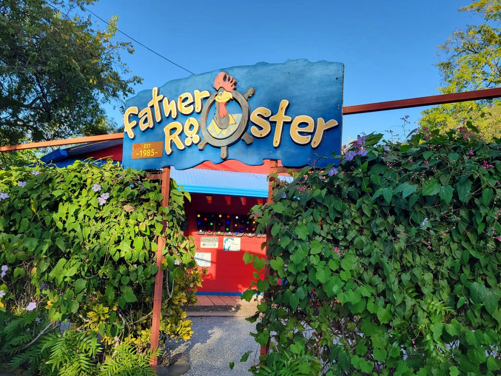 So we decided to ponder our options (we ended up staying) while checking out the beach and the only restaurant within walking distance, Father Rooster, about a mile away.