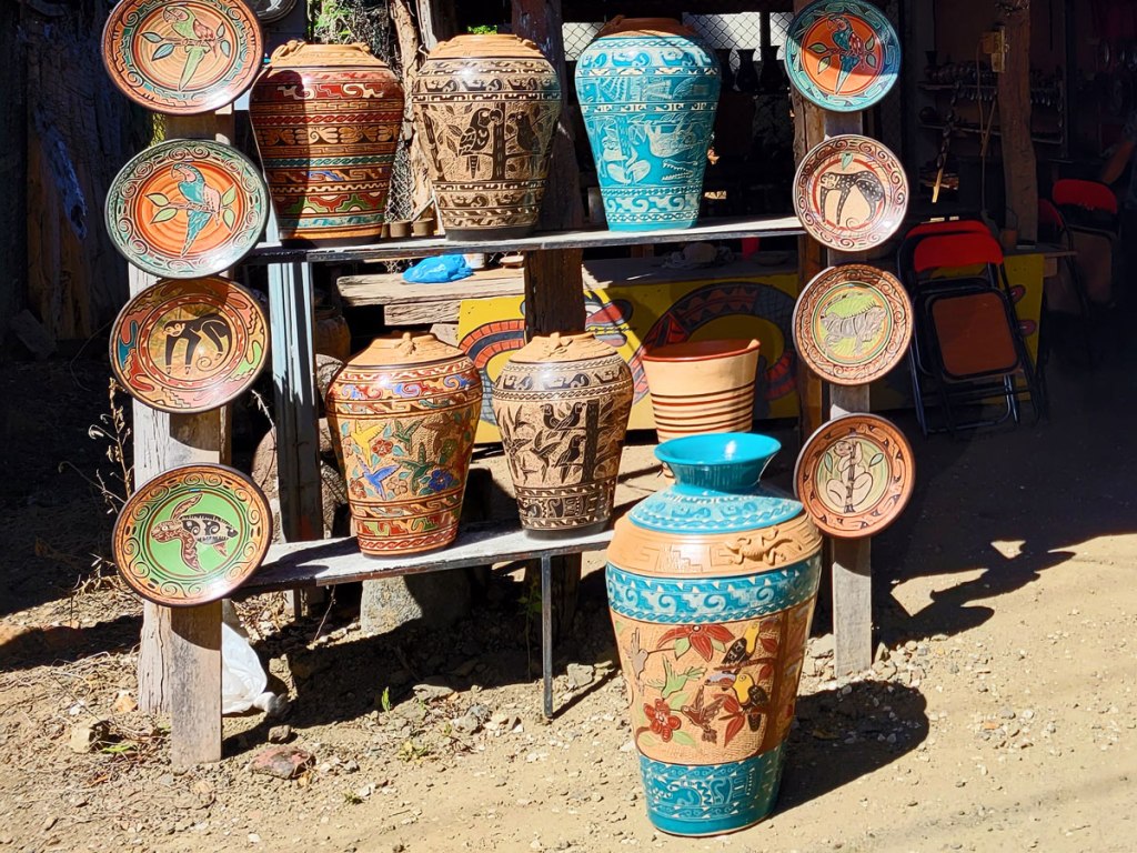 Guiaitil, the final stop on our tour, is a Chorotega indigenous village best known for its distinctive pottery. Skilled artisans (and there are many) use locally-sourced all-natural materials and a process that dates back hundreds of years (pre-Columbian) to craft intricate and colorful pots, pitchers and bowls. No shortcuts – everything is handmade without modern tools. Even the kiln is wood-fired.